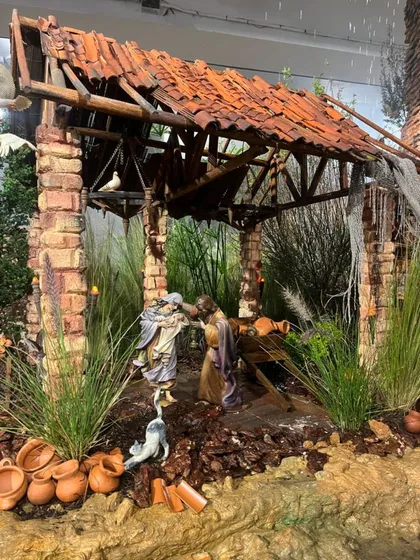 En contraste, al otro extremo de la exposición emerge un espacio de renovación. Allí se ubica el nacimiento, instalado en la ruina simbólica de una antigua fábrica del municipio, acompañado por una pareja que avanza bajo la lluvia. “Es un mensaje de levantarse incluso en medio de la tormenta, de no quedarse en el lugar incómodo, sino partir hacia otro espacio donde podamos seguir creando”, afirmó Ocampo.