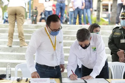 Tanto en la tierra de la loza como en Rionegro, Suárez firmó actas de compromiso para la ejecución de obras que serán financiadas entre las alcaldías y la Gobernación.