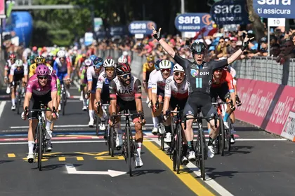 El pedalista del Oriente Antioqueño estuvo muy cerca de la victoria, pero Dainese lo sorprendió en los últimos instantes. En tercera posición terminó el también italiano Simone Consonni; mientras que Demare fue cuarto.