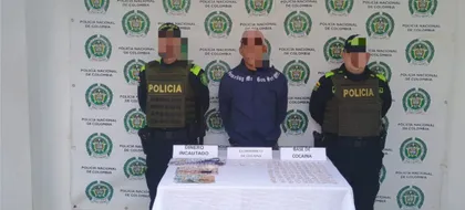 Durante su captura, al sujeto le fueron incautadas 100 bolsas plásticas con base de cocaína y ocho bolsas plásticas con una sustancia pulverulenta de color blanco que por su olor y características es similar al clorhidrato de cocaína.