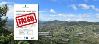 En redes sociales circula un falso comunicado de prensa de la Gobernación de Antioquia, acompañado de una falsa carta en PDF, supuestamente dirigida a los concejales del Oriente del departamento que apoyan el Área Metropolitana del Valle de San Nicolás.