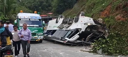 Según las autoridades de tránsito, un vehículo afiliado a la empresa TransPiedecuesta, que cubría la ruta Vegachi – Medellín, se volcó con 20 pasajeros de la empresa El Cóndor.