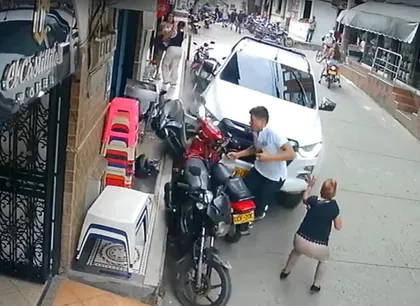 “(La camioneta) se mete a una zona rosa en el cual como que él se abre mucho y no se percata y venían otras motocicletas por esa misma vía. Como él se abrió tanto, al esquivarlo abruptamente tira su maniobra hacia el costado derecho y como que los nervios le hicieron una mala jugada y en vez de frenar, él acelera y alcanza a impactar a tres motocicletas, llevándose consigo dos peatones, pues empujándolos, causándole una lesión leve a una señora y a otro señor”.