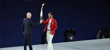 El campeón del mundo recupero la llama y se la entregó al mejor tenista de la historia sobre la tierra parisina de Roland Garros, donde ha triunfado en 14 ocasiones.