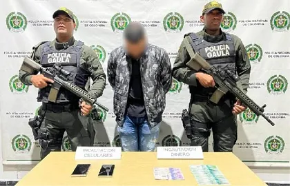 La Policía Nacional, a través del Gaula Metropolitano y en coordinación con la Fiscalía General de la Nación, logró la captura en flagrancia de un hombre de 28 años que estaba cobrando una extorsión. La detención se efectuó en la Terminal del Norte, cuando el individuo recibía el dinero exigido a la víctima.