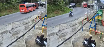 Se conoció el video de cámaras que captaron el momento en el cual un bus que transportaba cerca de 25 personas chocó con un furgón y cayó al vacío, en el kilómetro 3 de la vía entre Medellín y Santa Elena. Por ahora las autoridades registran heridos pero no hay balance general.