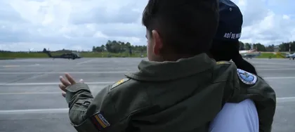 El niño también recibió como obsequio las alas de piloto militar, que le otorgó uno de los pilotos de la aeronave para que las porte con orgullo y recuerde que hubo unas alas extendidas por su Fuerza Aérea Colombiana para cumplir su sueño.