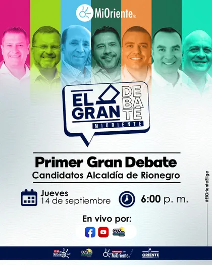 El sistema informativo de MiOriente.com, DeRegreso con MiOriente, 12:30 con MiOriente y MiOrientePlay tiene todo listo para que las ideas y propuestas primen durante el Primer Gran Debate con los candidatos a la Alcaldía de Rionegro.