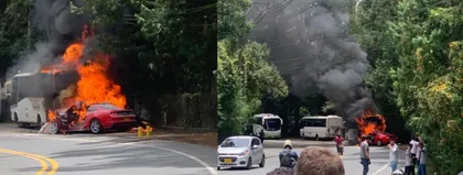 En el sitio un carro particular colisionó contra un bus, desatándose un incendio en el lugar de los hechos. No se registraron lesionados.