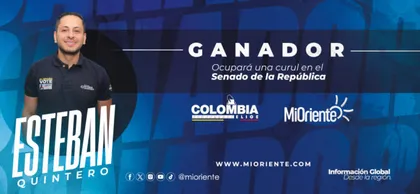 En conversación con MiOriente, Esteban Quintero agradeció a los miles de votantes que expresaron su respaldo a su partido y a la candidata Paloma Valencia, y dijo que en el próximo periodo legislativo defenderá la niñez, el deporte y la infraestructura.