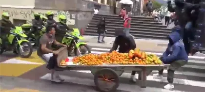 El comerciante evitó, con un cuchillo que usa para pelar las naranjas que vende, que los funcionarios se le llevaran la carreta.