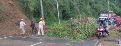 La Autopista Medellín-Bogotá, luego del cierre total que se registró por un deslizamiento de tierra, se encuentra operando con paso a un carril después de la remoción de parte del material realizada por el operador de la vía en la calzada Medellín-Bogotá, municipio de Copacabana, sector El Descanso del Amor, km 04+500.