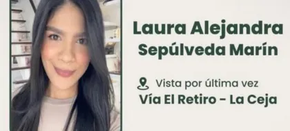 La Gobernación de Antioquia informó que Laura Sepúlveda Marín, reportada como desaparecida desde el 3 de enero en el Oriente de Antioquia, fue localizada y trasladada a un centro hospitalario para valoración médica.