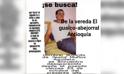 Desde el pasado viernes 23 de octubre, los familiares de Gildardo de Jesús Muñoz Agudelo no saben nada de su paradero. La última vez que lo vieron fue en la vereda El Guaico de Abejorral, lugar donde reside.