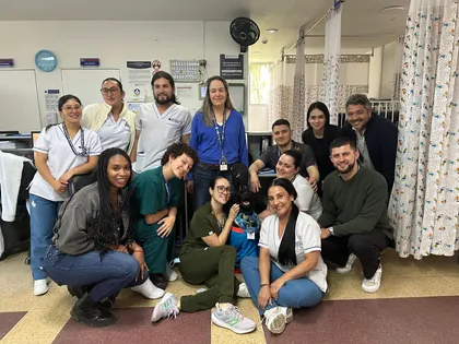 Simba también ha comenzado a recorrer los servicios de hospitalización, donde fue recibido con entusiasmo. Todos quieren saludarlo, tomarse fotos con él y compartir un momento de alegría.