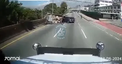 En video quedó registrado el momento exacto del terrible accidente ocurrido a las 9:53 de la mañana de este martes en la autopista Norte, a la altura de Haceb en Copacabana. Un camión que transportaba licor se habría quedado sin frenos y chocó contra el separador de la calzada.